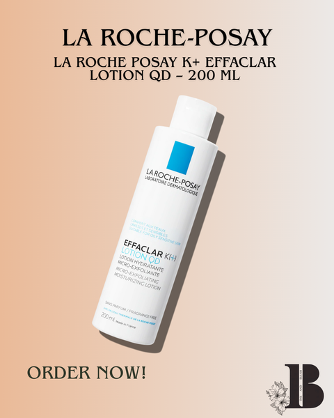 The La Roche-Posay Effaclar K(+) Lotion is a daily renewing care specially formulated for oily, combination, and acne-prone skin. Enriched with LHA (Lipo-Hydroxy Acid) and salicylic acid, it gently exfoliates the skin, unclogs pores, and refines skin texture while preventing excess oil and shine.