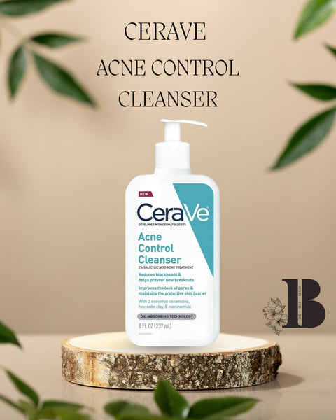 CeraVe Acne Control Cleanser 2% Salicylic Acid (237ml): A refreshing gel-to-foam cleanser with 2% salicylic acid that helps treat active acne, unclog pores, and prevent new breakouts. Formulated with oil-absorbing technology, niacinamide, and ceramides, it gently removes excess oil, soothes skin, and restores the natural barrier, leaving acne-prone skin clearer and healthier-looking.