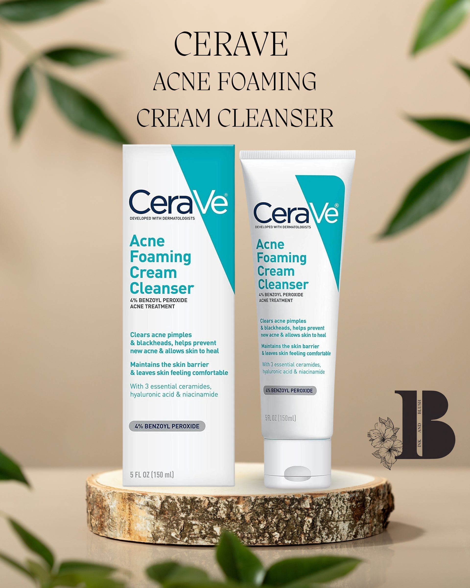 CeraVe Acne Foaming Cream Cleanser (150ml): A gentle yet effective cleanser with 4% benzoyl peroxide that helps clear acne, prevent new breakouts, and remove excess oil and impurities. Formulated with ceramides, niacinamide, and hyaluronic acid, it maintains the skin barrier, soothes irritation, and provides hydration, leaving skin clean and refreshed.