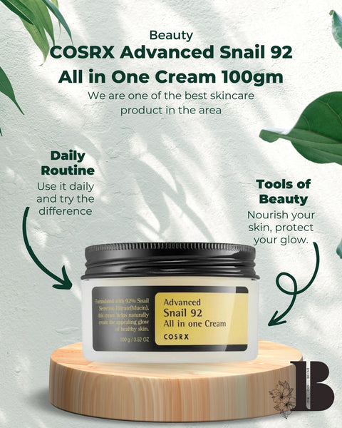 COSRX Advanced Snail 92 All in One Cream is a deeply hydrating and repairing moisturizer enriched with 92% snail mucin extract. It helps restore skin elasticity, fade acne scars, improve skin texture, and lock in moisture without heaviness. Its lightweight gel-cream formula soothes irritation, strengthens the skin barrier, and leaves the complexion plump, smooth, and radiant—ideal for all skin types, especially sensitive and damaged skin.