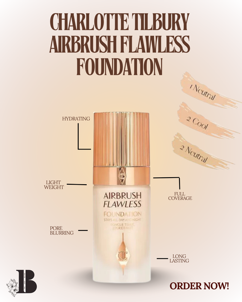 Discover your most flawless complexion with Charlotte Tilbury’s Airbrush Flawless Foundation. This full-coverage, stay-all-day formula smooths, blurs, and evens out skin tone while delivering a natural matte finish. Infused with skincare benefits like hydrating Magic MossCellTec™, anti-aging REPLEXIUM®, and pollution-defense AirCool™ technology, it not only perfects but also cares for your skin. Sweat-proof, humidity-proof, and transfer-resistant, this foundation gives you a long-lasting, airbrushed look that feels lightweight and comfortable. Suitable for all skin types.