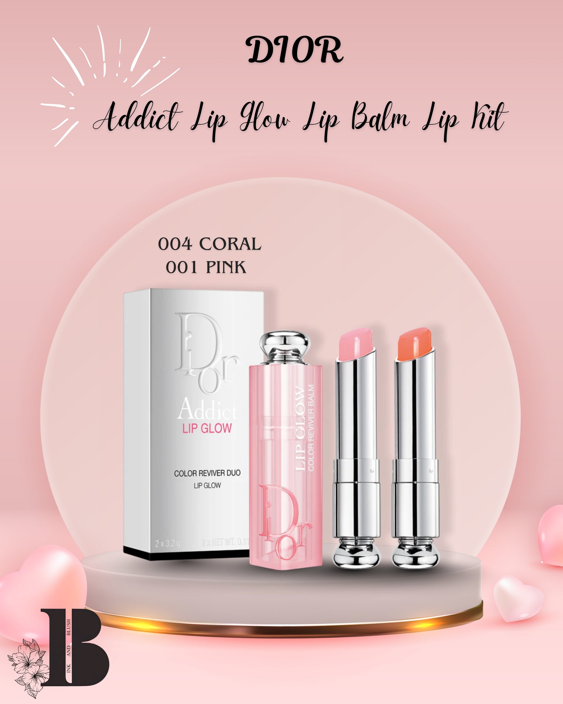 Dior Addict Lip Glow Lip Balm Lip Kit - 004 Coral +001 Pink