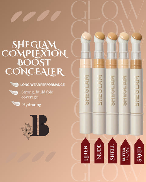Brighten, conceal, and perfect with SHEGLAM Complexion Boost Concealer. This lightweight, buildable formula effortlessly covers dark circles, blemishes, and imperfections while blending seamlessly into the skin. Enriched with a smooth, creamy texture, it delivers natural-looking coverage that lasts all day—without creasing or caking. Perfect for achieving a flawless, fresh complexion.