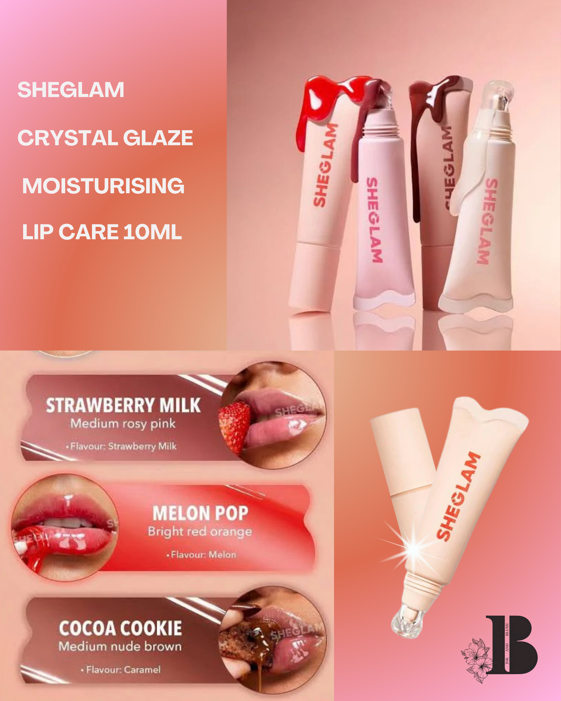 Sheglam Crystal Glaze Moisturizing Lip Care (10 ml) is a nourishing lip treatment that combines intense hydration with a crystal-clear glossy finish. Enriched with skin-loving ingredients like hyaluronic acid, shea butter, and vitamin E, it helps repair dryness, lock in moisture, and leave lips looking plump, soft, and radiant—all with a lightweight, non-sticky feel.